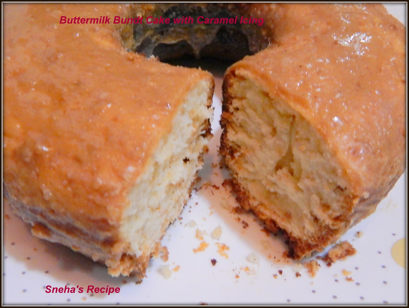 Buttermilk Bundt Cake with Caramel Icing from Sneha's Recipe