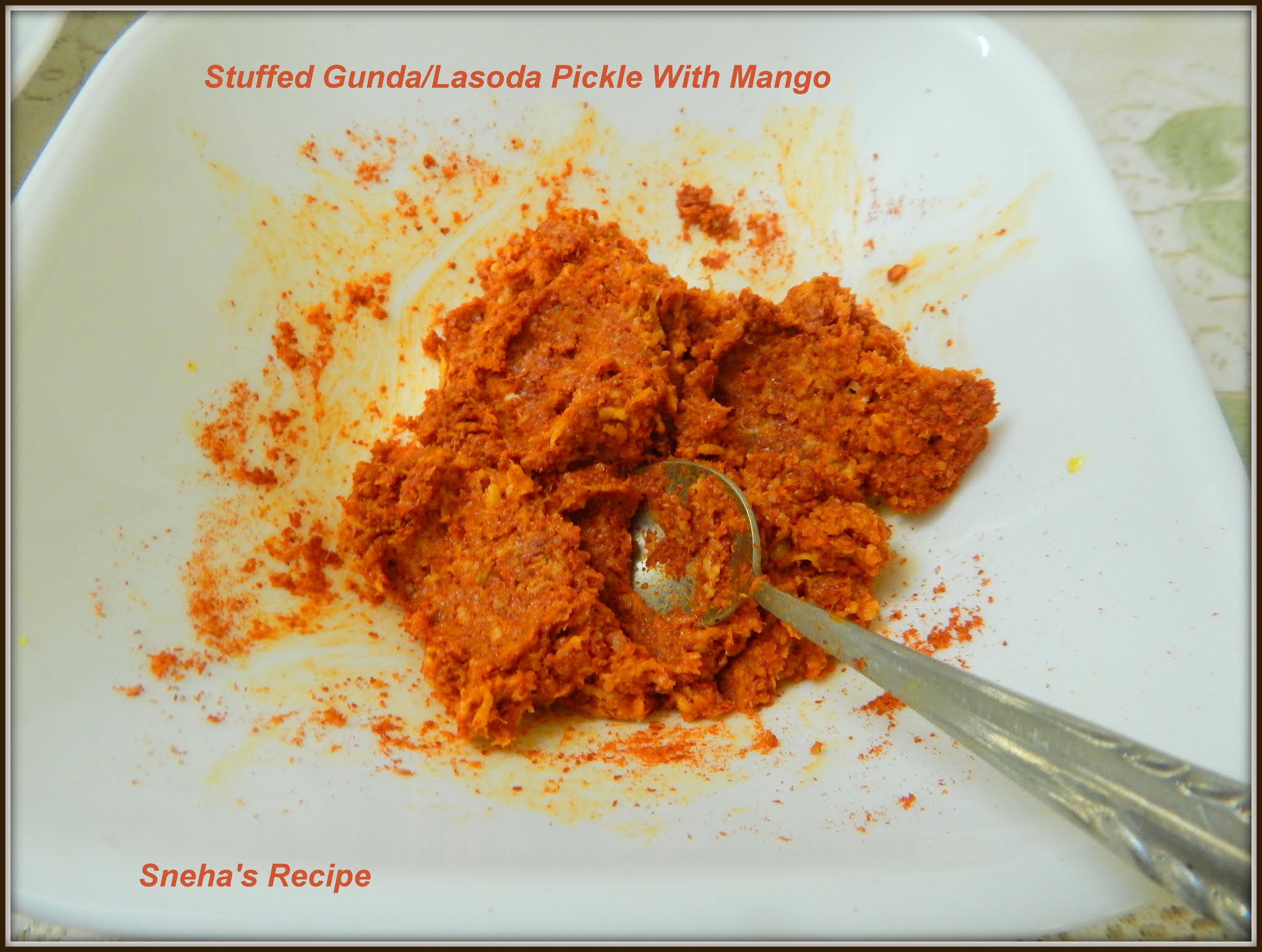 - Stuffed Gunda / Lasoda Pickle With Mango by Sneha's Recipe